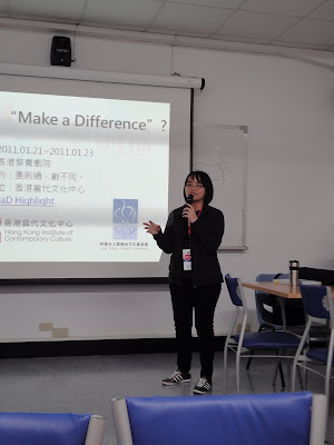 這次舉辦在香港葵青劇院為期三天的(1/21~1/23)第二屆2011 Make a Difference活動比第一屆更加的盛大,約一千多位來自世界各地的MaDees參與這次的盛會,而這一千多位的MaDees中包含了十二位來自台灣各個不同的大專院校的學生所組成的「來自月涵堂的花漾少男少女團」,其團體以每四人一組,共三組,分別從「創業」、「藝術」和「教育」為為主的三大方向,對活動進行了解與參與。